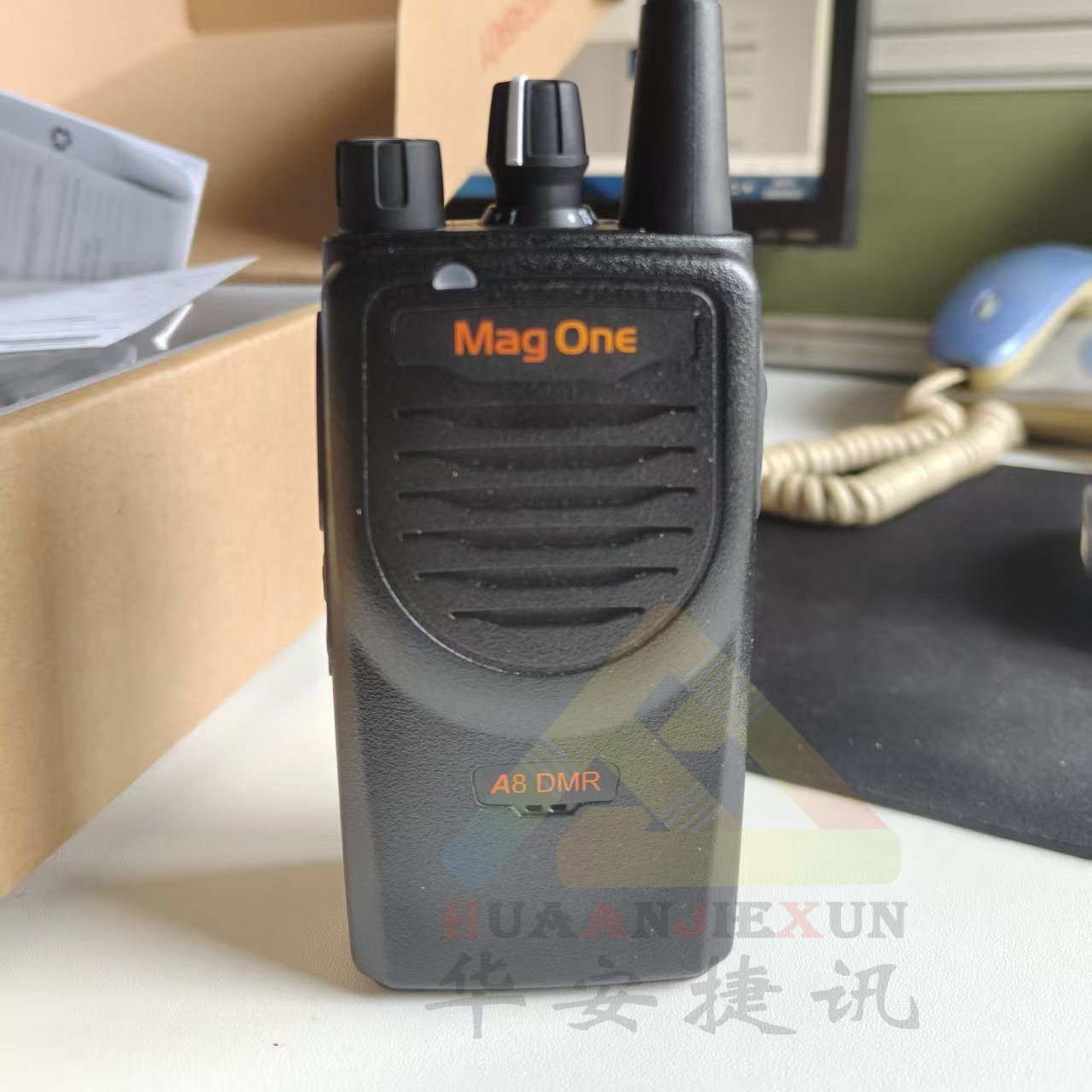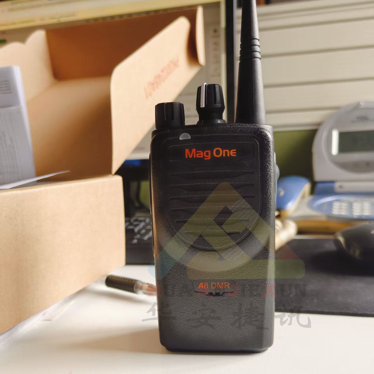 Mag One A8 DMR的核心优势在于其强大的兼容性和适应性。设备支持模拟与数字双模式自动切换,确保无论信号源是模拟或数字对讲机,都能无缝对接,实现高效通信。这一特性特别适合混合通信环境,企业无需更换现有设备即可逐步升级数字系统。此外,其IP54防护等级提供基础防尘防水能力,确保在恶劣工业或户外条件下稳定运行。机身设计精巧,重量约350克(含电池),握持舒适,适合长时间使用。